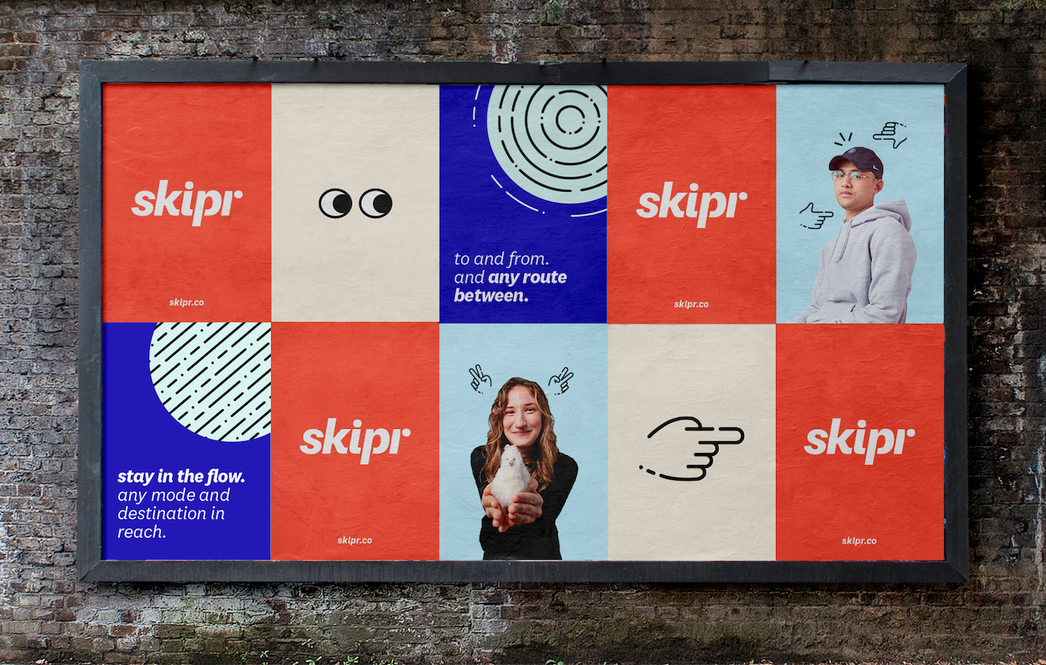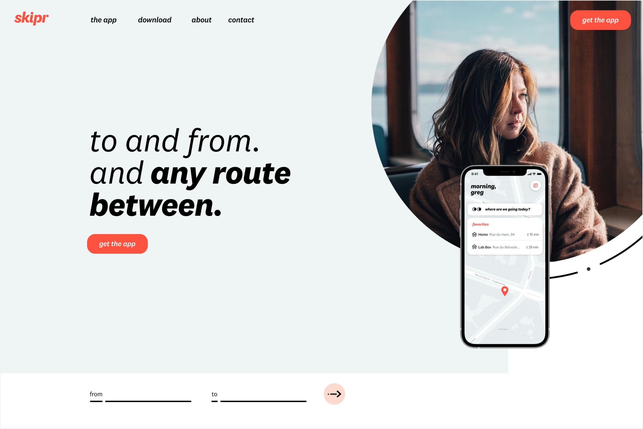 as a MAAS (mobility as a service) company, brussels-based skipr aims to enable efficient mobility through a car-logged city by aggregating all forms of belgian transportation, wayfinding, and ticketing into one app. we helped them build a brand that illustrates the friendly assistant-in-your-pocket who is always there to interject if you’ve hopped on the wrong train or to help you locate the closest electric bike.
